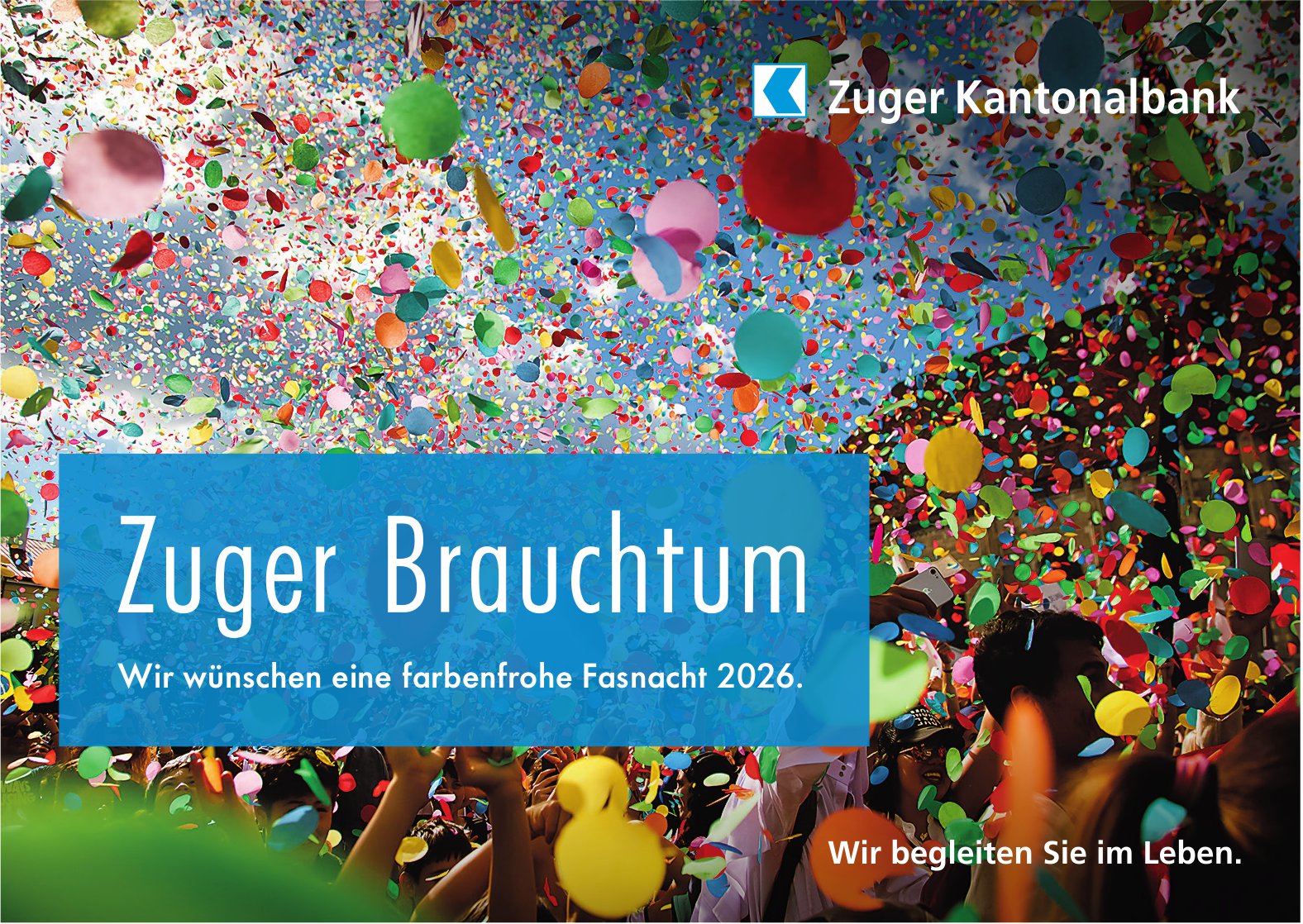 Zuger Kantonalbank, Zuger Brauchtum; Wir wünschen eine farbenfrohe Fasnacht 2026