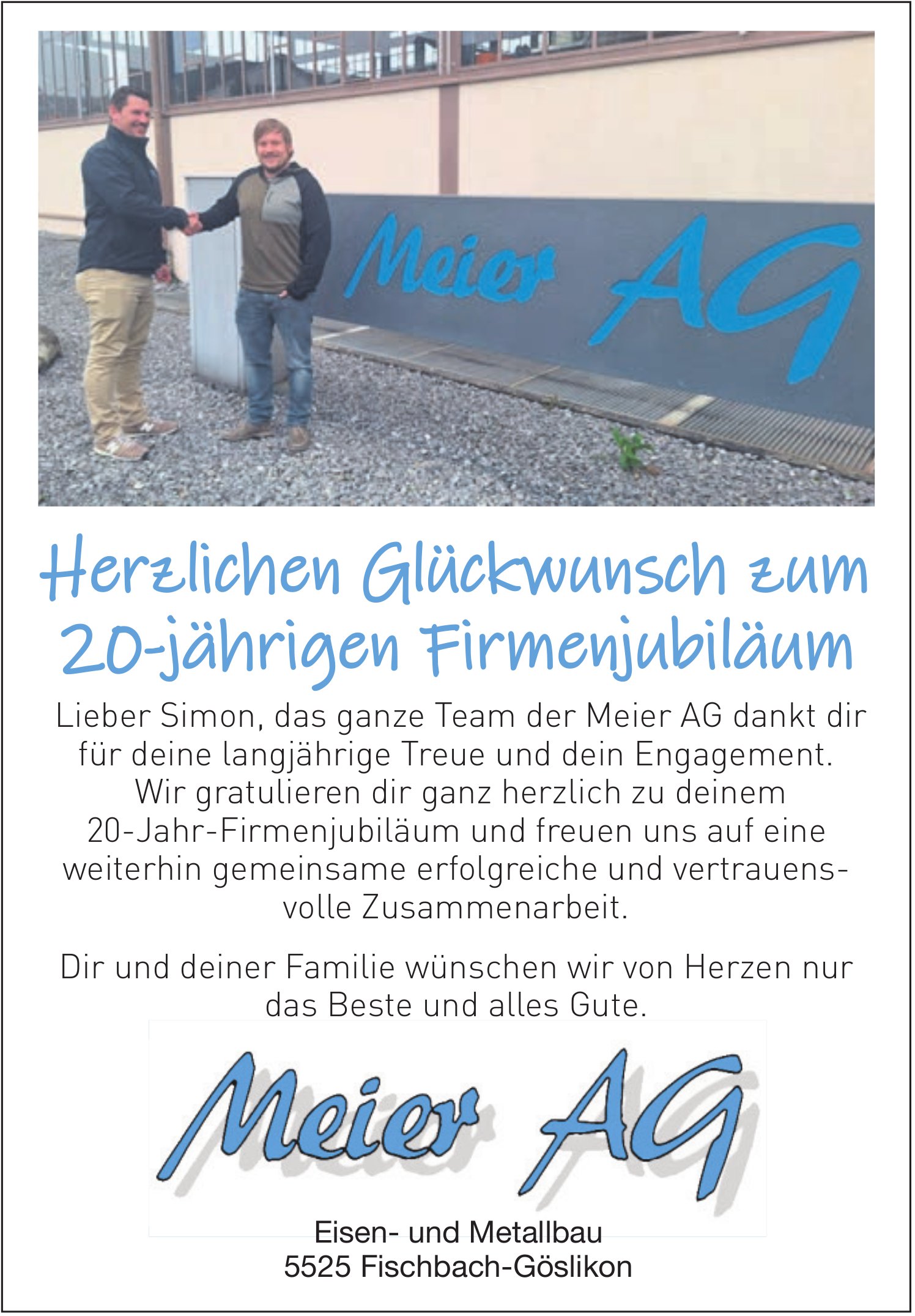 Meier AG Eisen- und Metallbau - Herzlichen Glückwunsch zum 20-jährigen Firmenjubiläum, lieber Simon