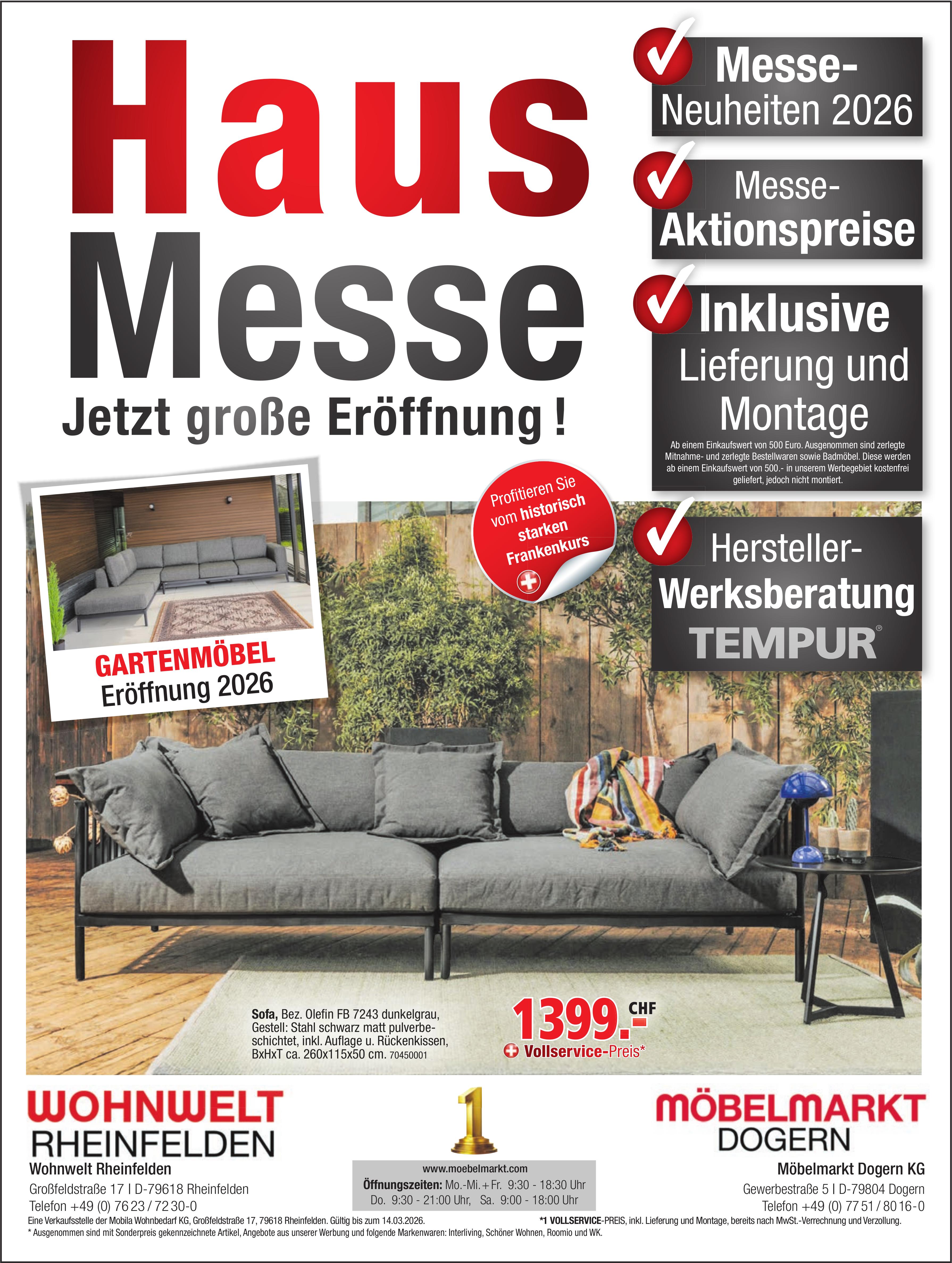 Wohnwelt Rheinfelden / Möbelmarkt Dogern, Haus Messe - Jetzt grosse Eröffnung!