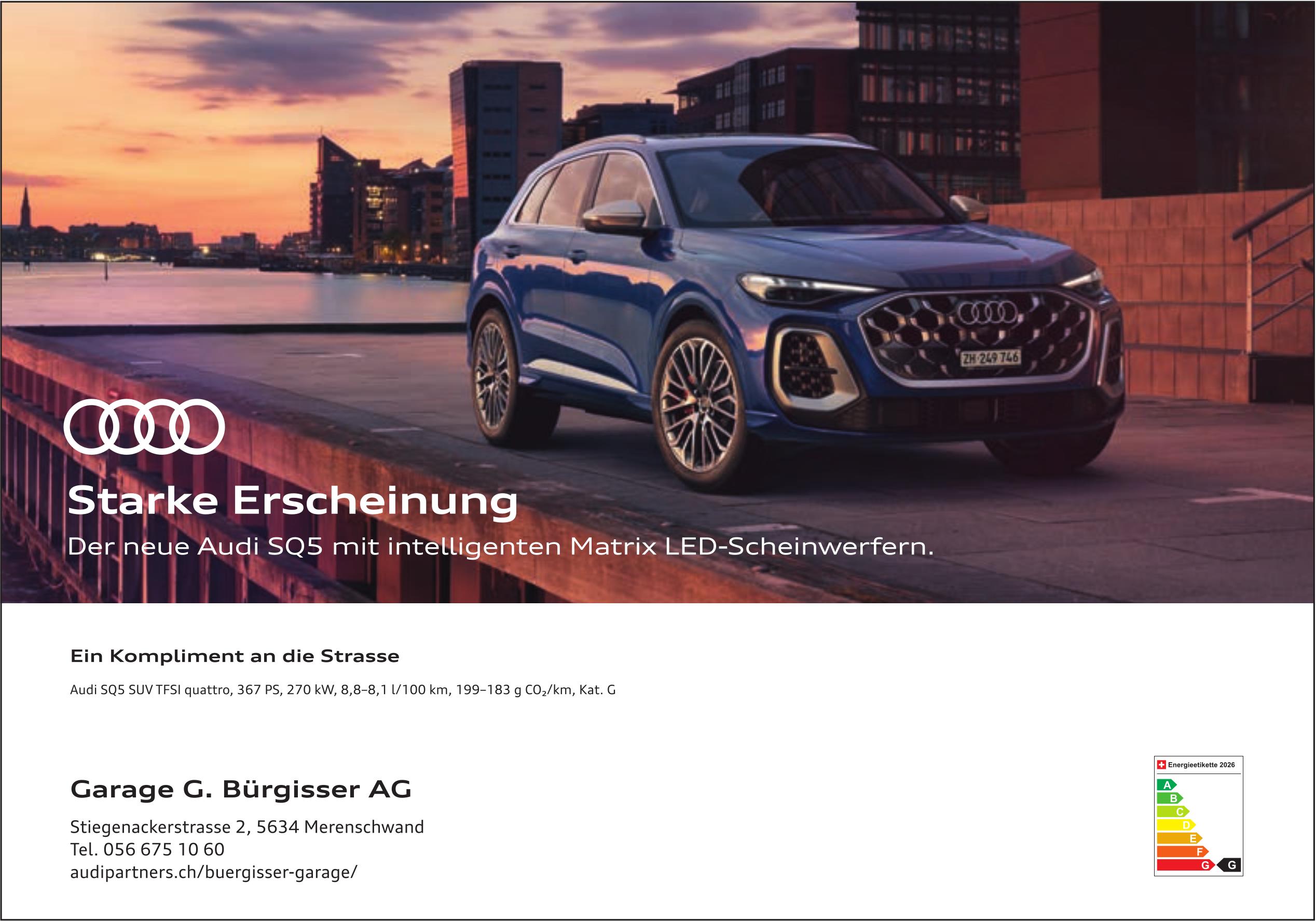 Garage GC Bürgisser AG, Merenschwand - Stärke Erscheinung: Der neue Audi SQ5 mit intelligenten Matrix LEd-Scheinwerfern