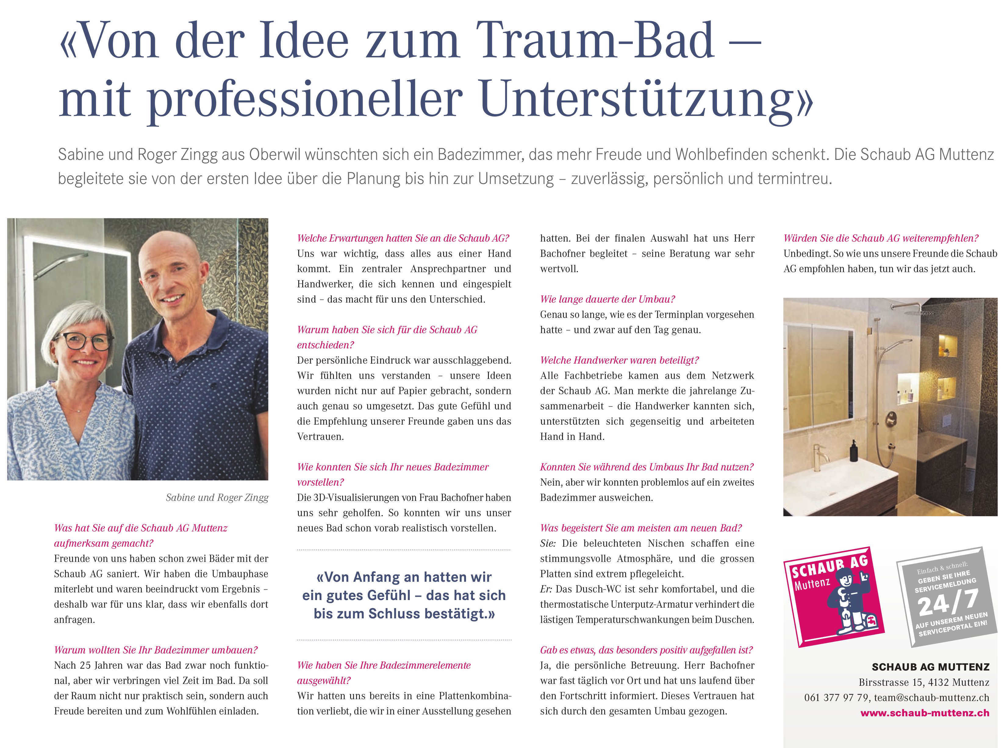 Schaub AG Muttenz, «Von der Idee zum Traum-Bad—mit professioneller Unterstützung»
