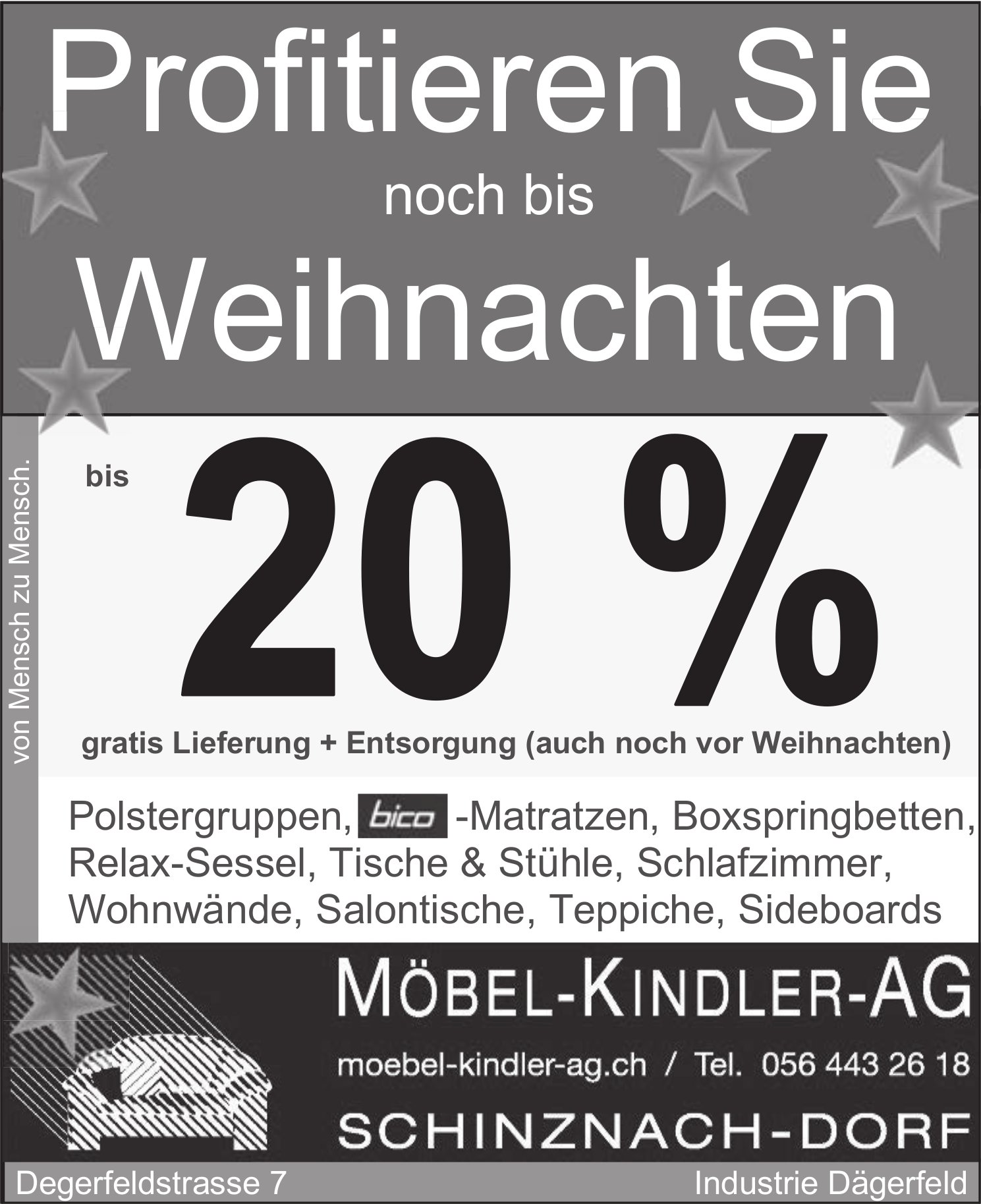 Möbel Kindler AG, Schinznach-Dorf - 20% Rabatt bis Weihnachten