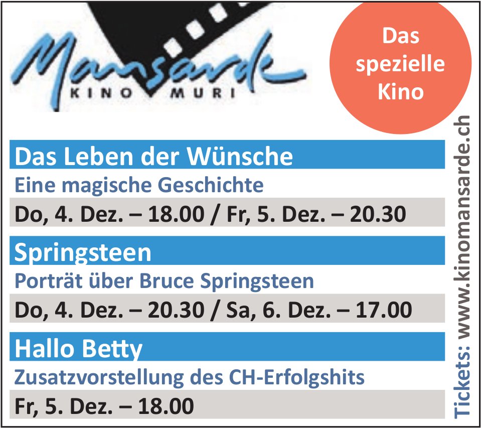 Kino Mansarde Muri, Programm vom 4. - 6. Dezember
