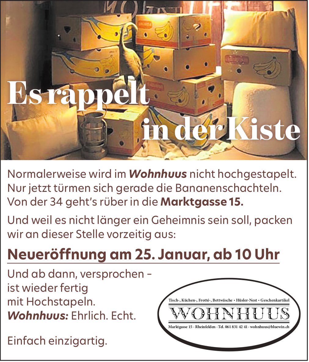 Neueröffnung, 25. Januar, Wohnhuus, Rheinfelden