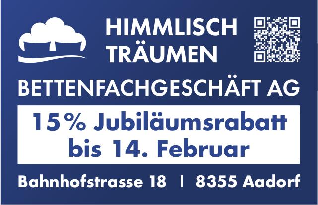 Himmlisch Träumen Bettenfachgeschäft AG, Aadorf - 15% Jubiläumsrabatt bis 14. Februar