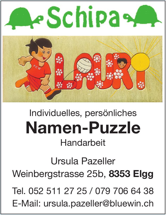 Schipa, Elgg - Individuelles, persönliches Namen-Puzzle, Handarbeit