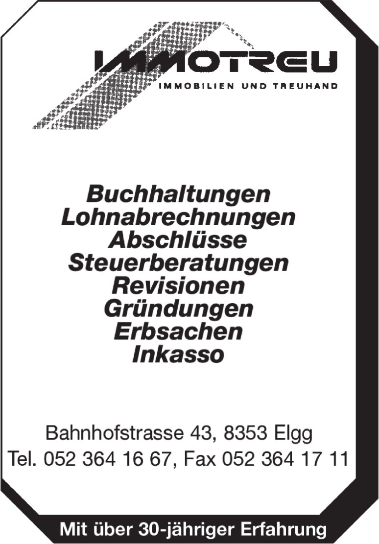 Immotreu Immobilien und Treuhand, Elgg - Buchhaltungen, Lohnabrechnungen, Abschlüsse, Steuerberatungen...