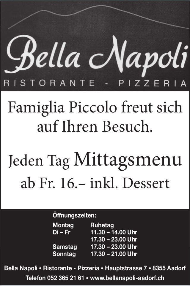Bella Napoli Aadorf, Famiglia Piccolo freut sich auf Ihren Besuch.