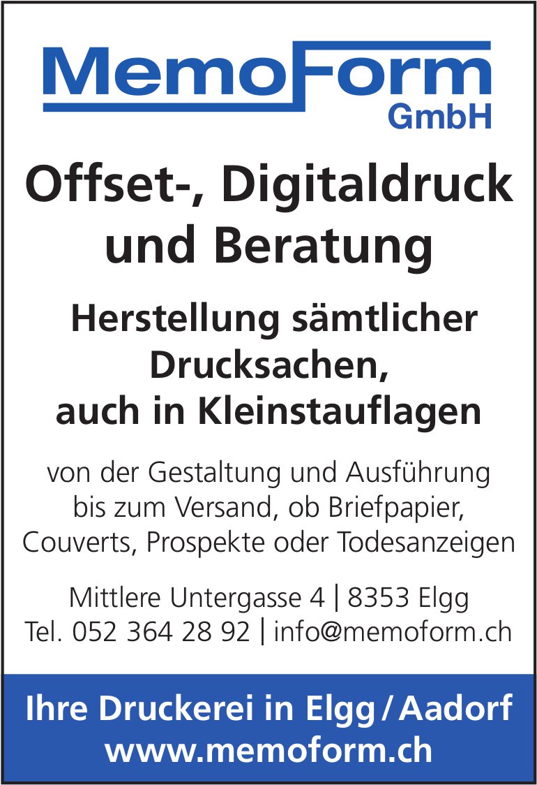 Memo Form GmbH, Elgg - Herstellung sämtlicher Drucksachen, auch in Kleinstauflagen