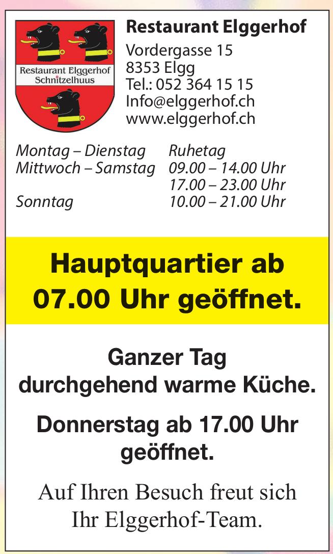 Reastaurant Elggerhof, Hauptquartier ab 07.00 Uhr geöffnet.