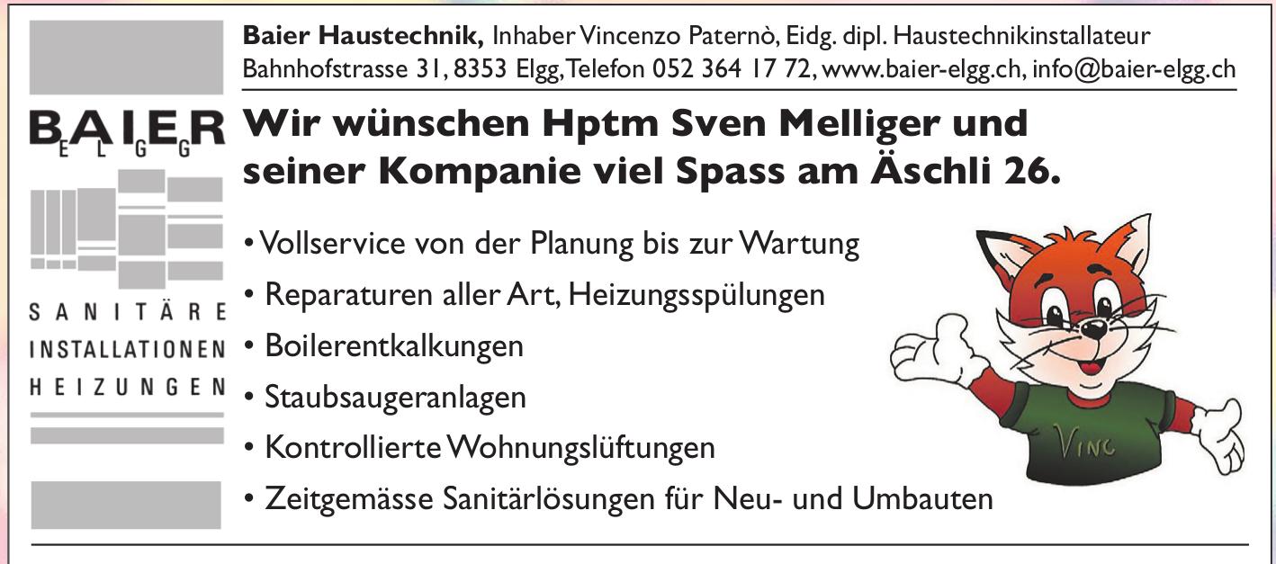 Baier Haustechnik, Elgg - Wir wünschen Hptm Sven Melliger und seiner Kompanie viel Spass am Äschli 26.