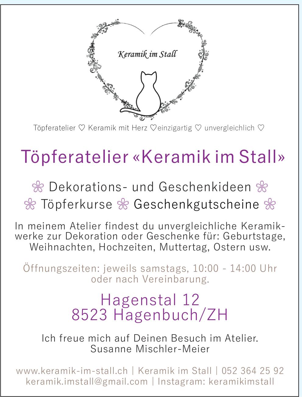 Töpferatelier «Keramik im Stall», Hagenbuch/ZH - Dekorations- und Geschenkideen, Töpferkurse, Geschenkgutscheine