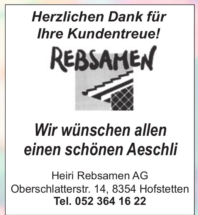Heiri Rebsamen AG, Hofstetten - Herzlichen Dank für Ihre Kundentreue!