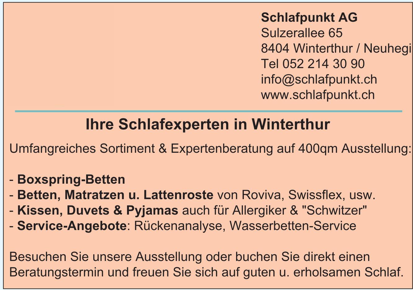 Schlafpunkt AG, Winterthur - Ihre Schlafexperten... Umfangreiches Sortiment & Expertenberatung...