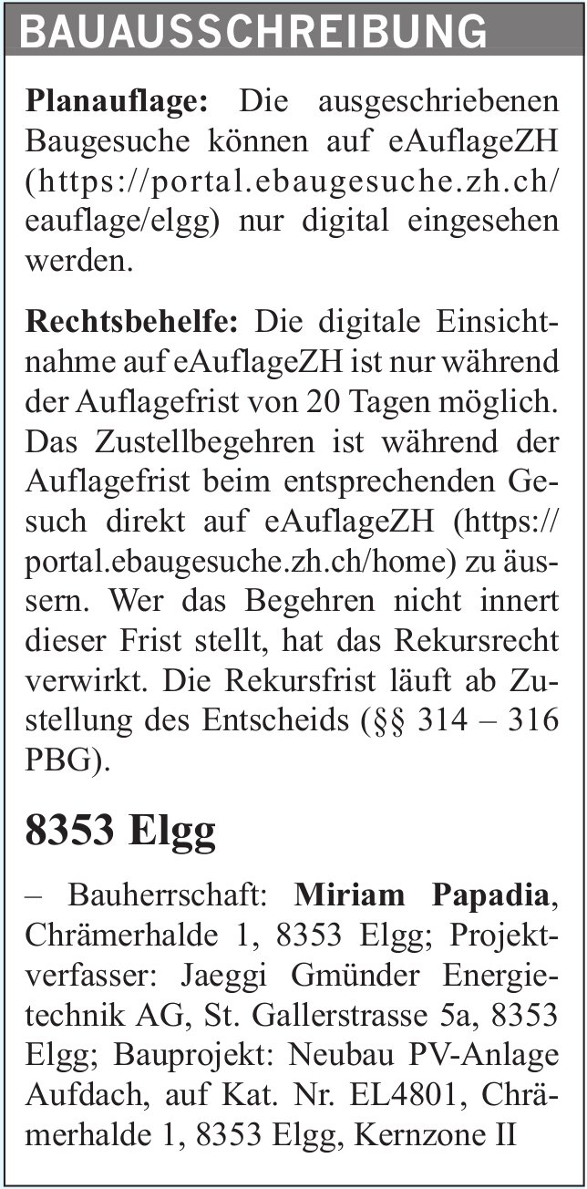 Baugesuche, Elgg - Miriam Papadia