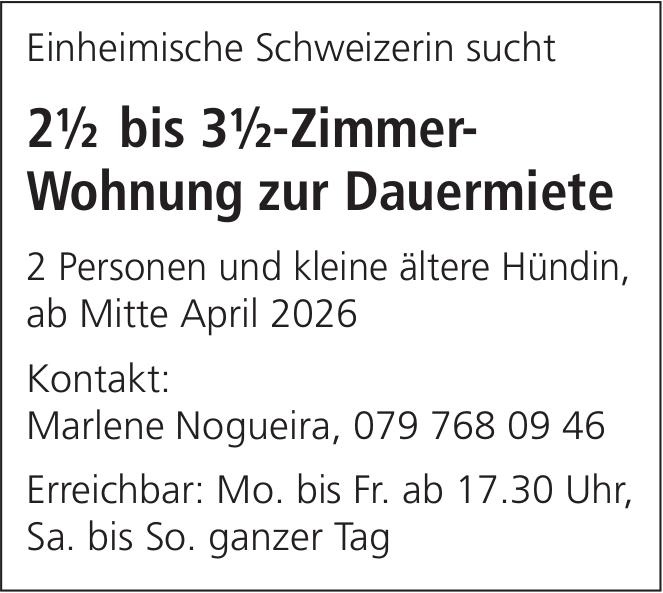 2½ bis 3½-Zimmer- Wohnung zur Dauermiete, zu mieten gesucht