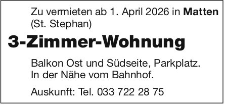 3-Zimmer-Wohnung, Matten, zu vermieten