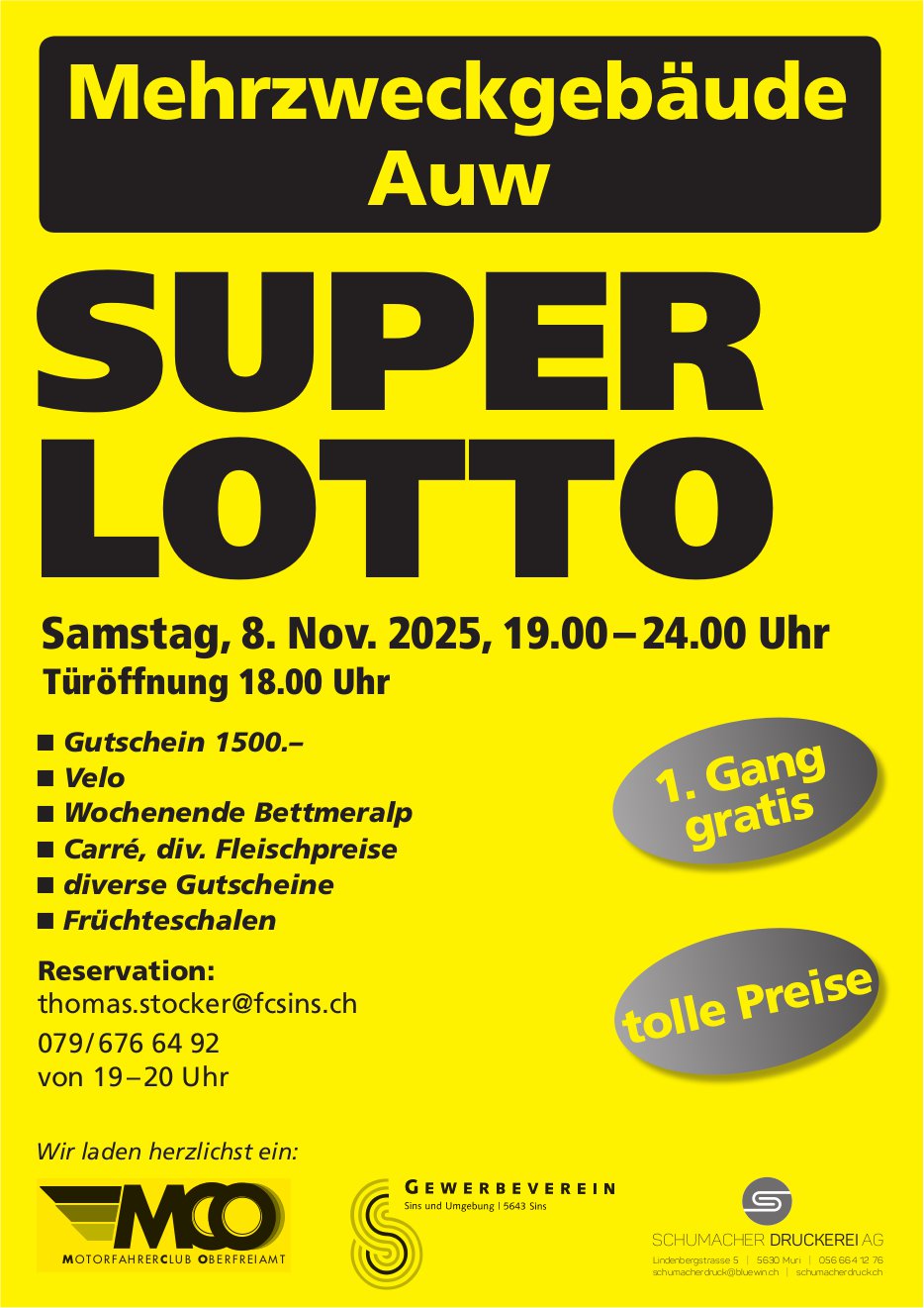 Super Lotto, 8. November, Mehrzweckgebäude, Auw