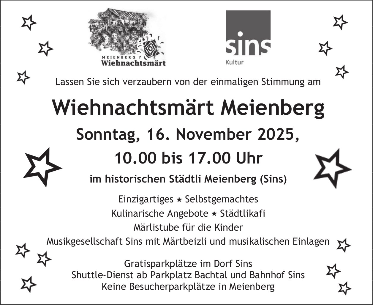 Wiehnachtsmärt, 16. November, Historisches Städtli, Meienberg (Sins)