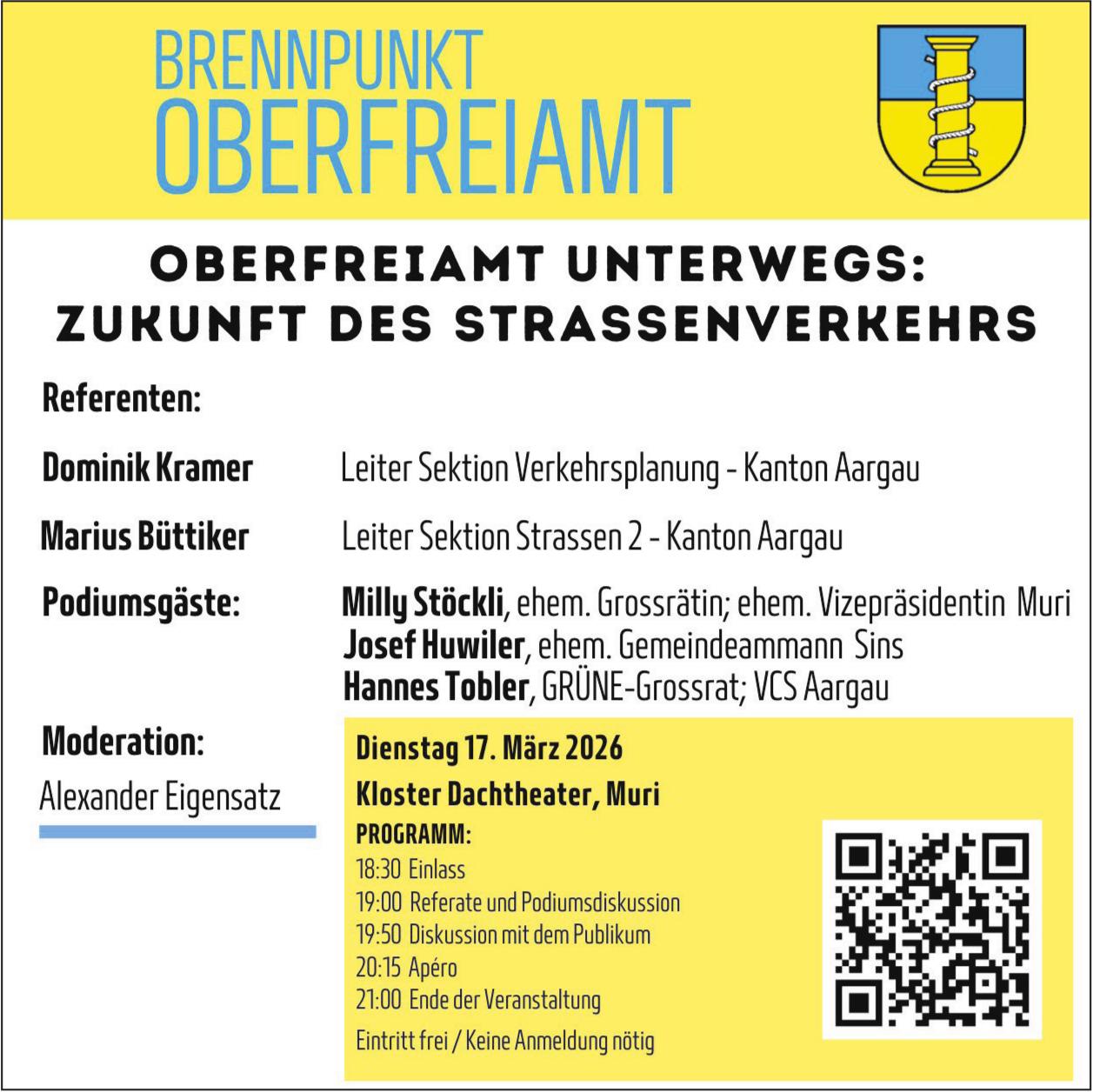 Oberfreiamt Unterwegs: Zukunft des Strassenverkehrs, 17. März, Kloster Dachtheater, Muri