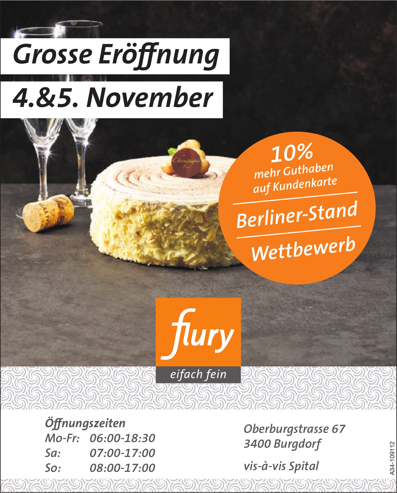 Grosse Eröffnung, 4. & 5. November, Flury, Burgdorf
