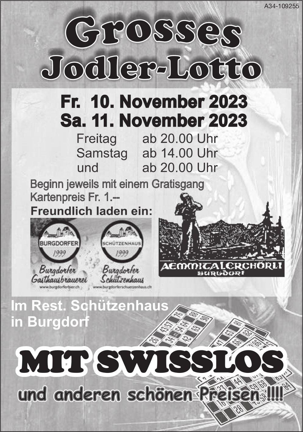 Grosses Jodler-Lotto, 10./11. November, Burgdorf