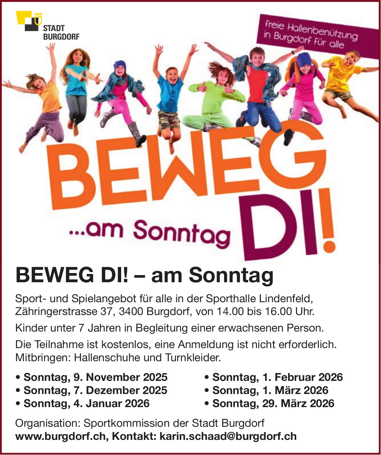 Sport- und Spielangebot für alle, 9. November, Sporthalle Lindenfeld, Burgdorf