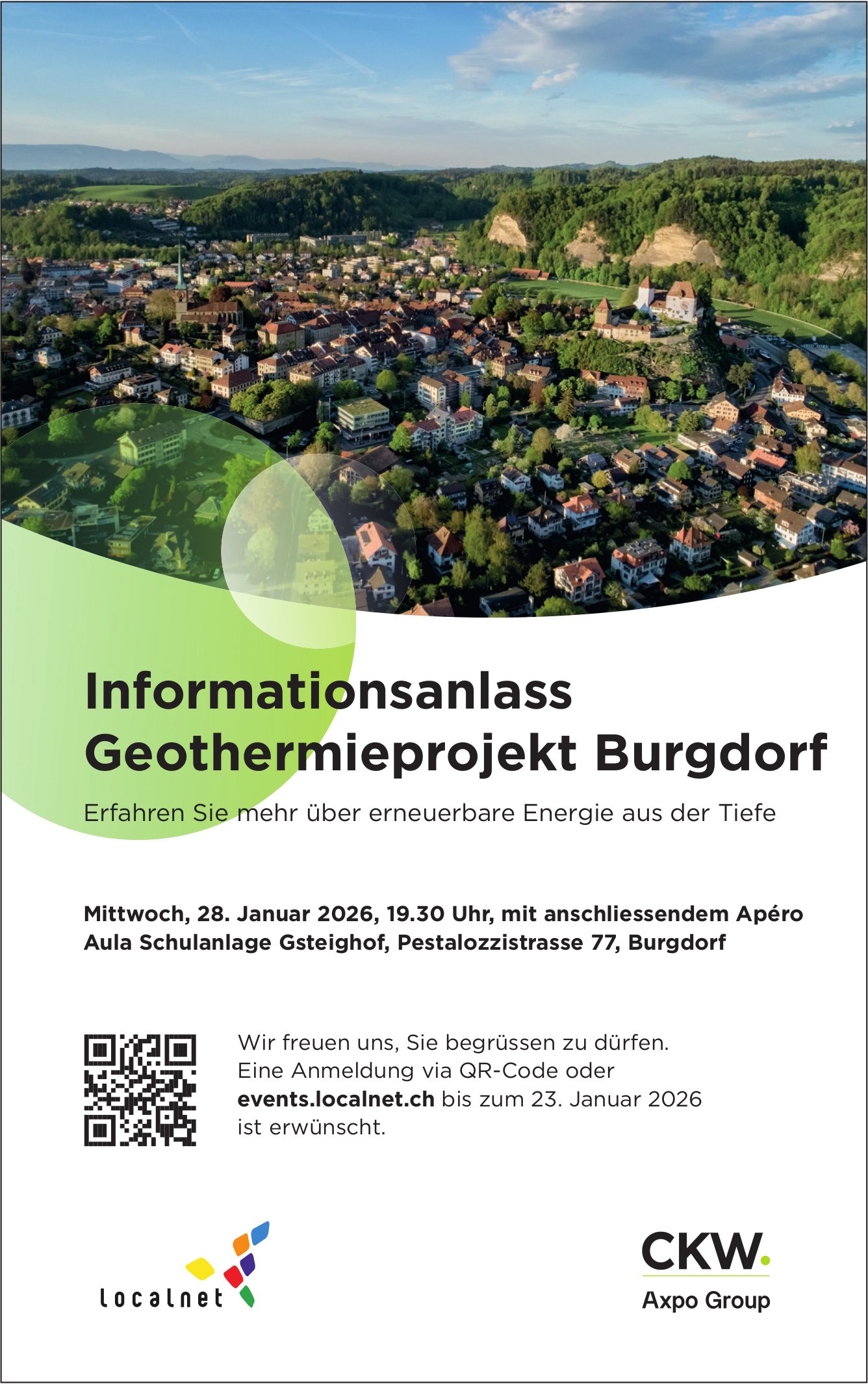Informationsanlass Geothermieprojekt Burgdorf, 28. Januar, Aula Schulanlage Gsteighof