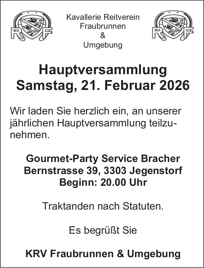 Hauptversammlung Samstag, 21. Februar 2026, 21. Februar, Jegenstorf