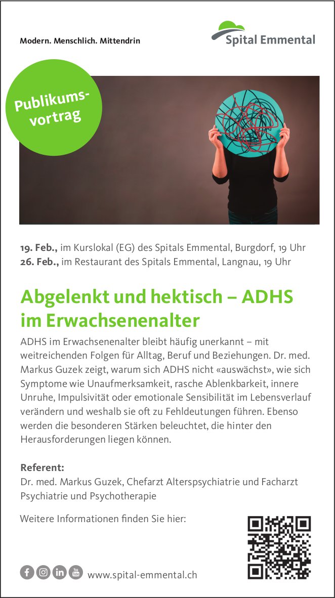 Abgelenkt und hektisch – ADHS im Erwachsenenalter, 19. /26. Februar, Burgdorf
