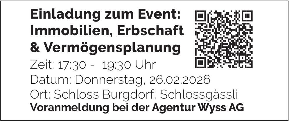 Einladung zum Event: Immobilien, Erbschaft & Vermögensplanung, 26. Februar, Burgdorf
