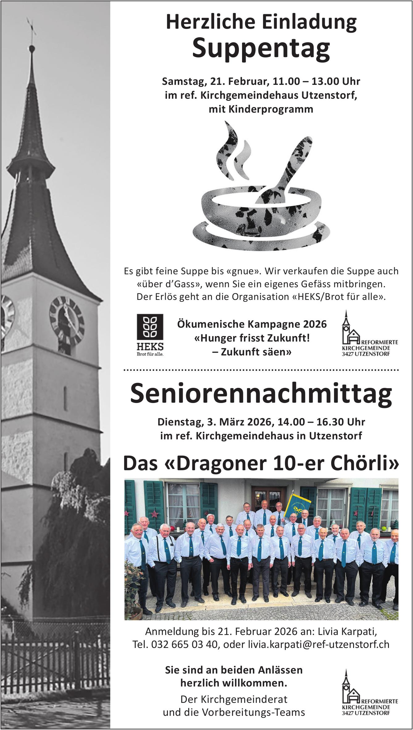 Suppentag, 21. Februar, ref. Kirchgemeindehaus in Utzenstorf