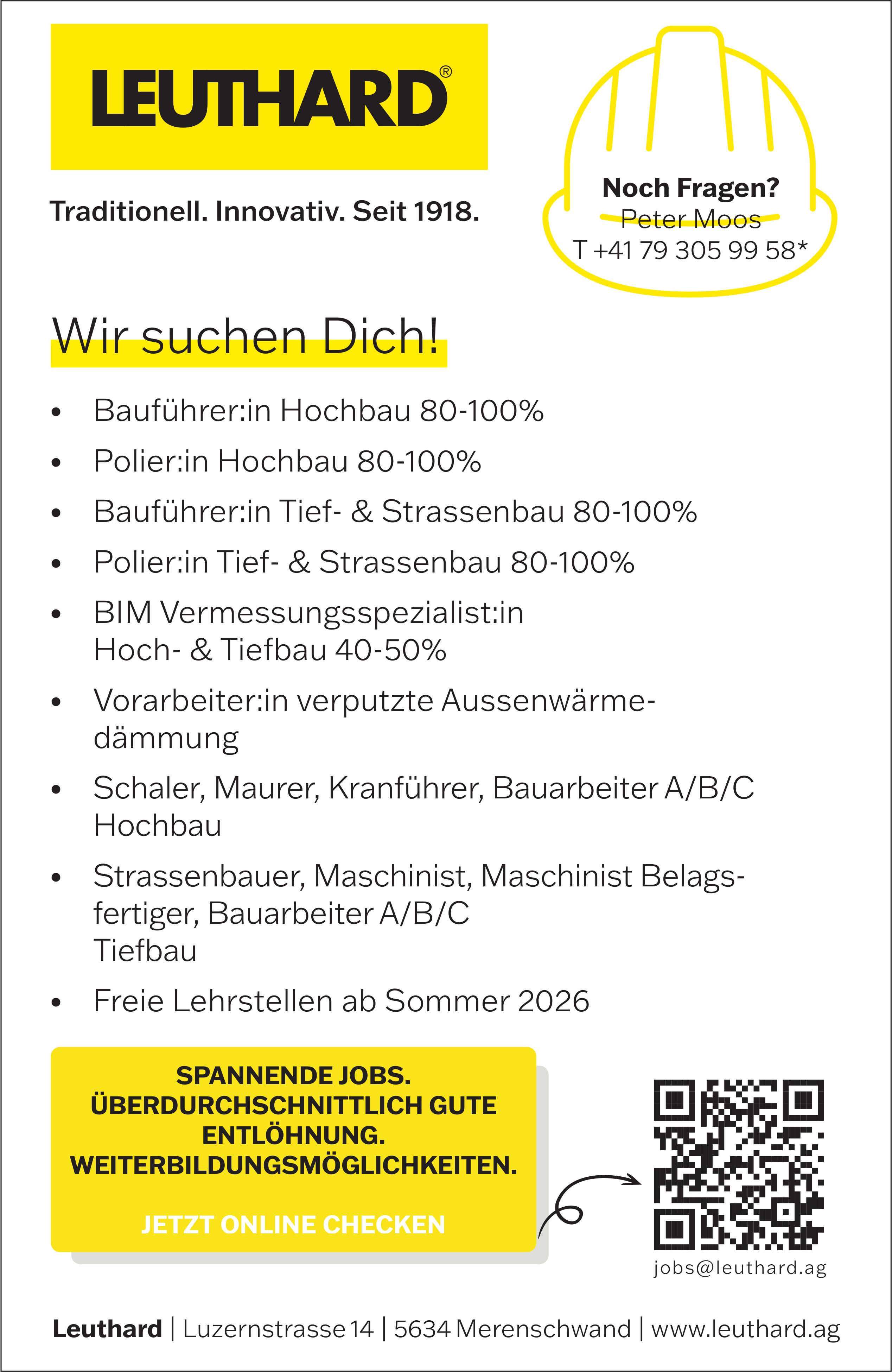 Wir suchen Dich!, Leuthard AG, Merenschwand - diverse offene Stellen