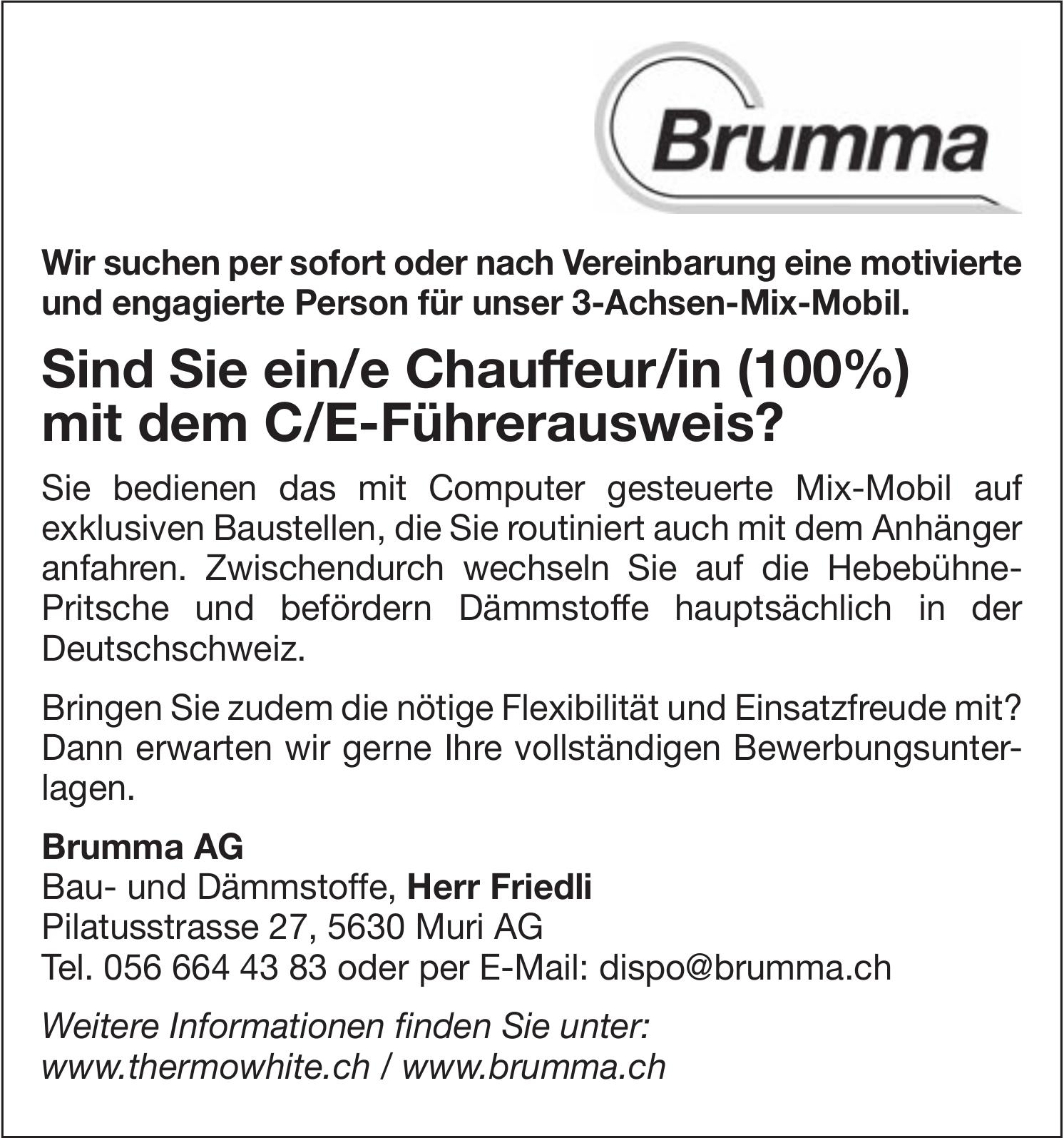 Chauffeur/in (100%) mit dem C/E-Führerausweis, Brumma AG, Muri AG, gesucht