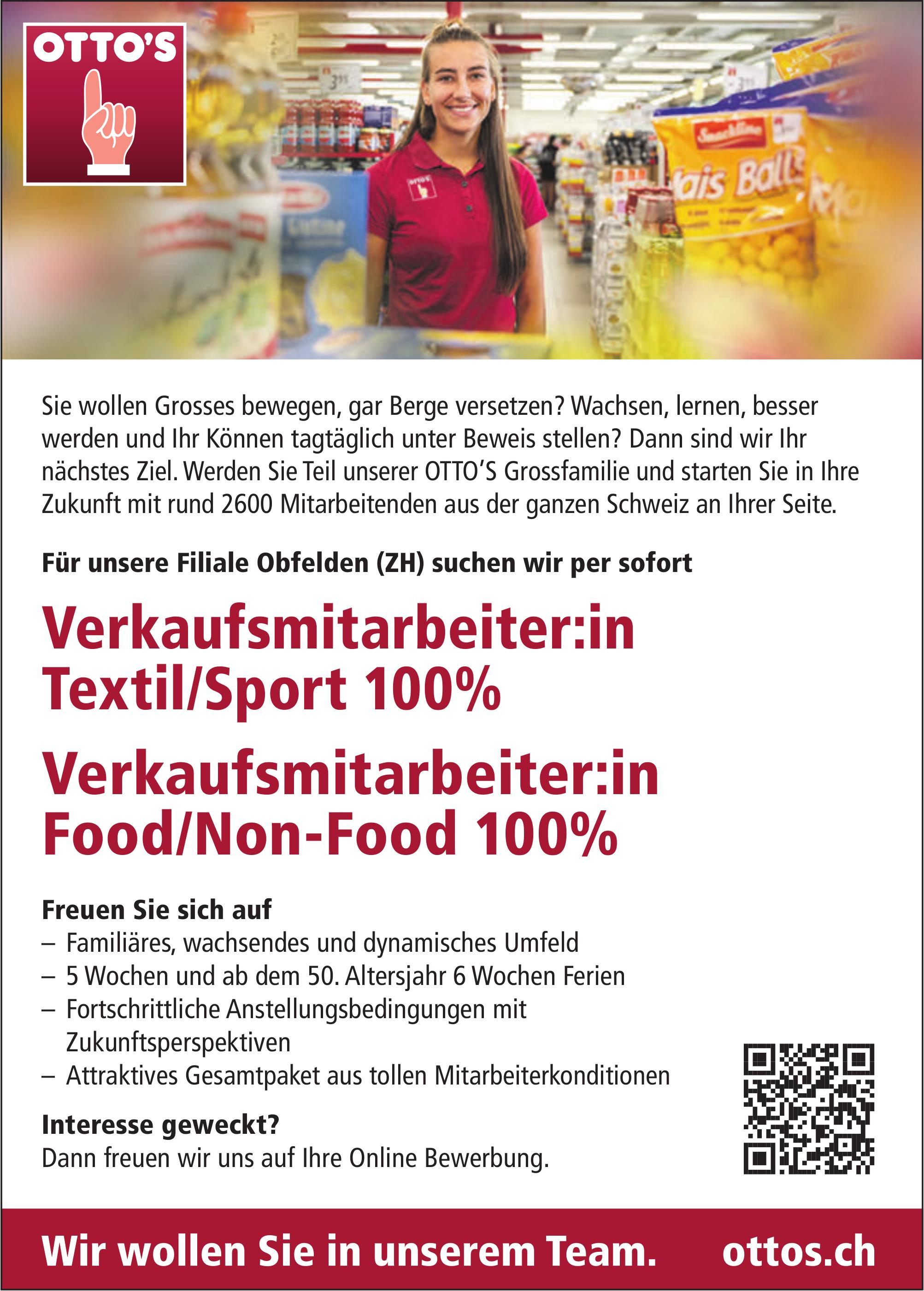 Verkaufsmitarbeiter:in Textil/Sport 100% / Verkaufsmitarbeiter:in Food/Non-Food 100%, Otto's, Obfelden, gesucht