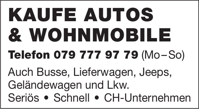 CH-Unternehmen, Kaufe Autos & Wohnmobile