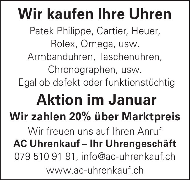 AC Uhrenkauf, Wir kaufen Ihre Uhren