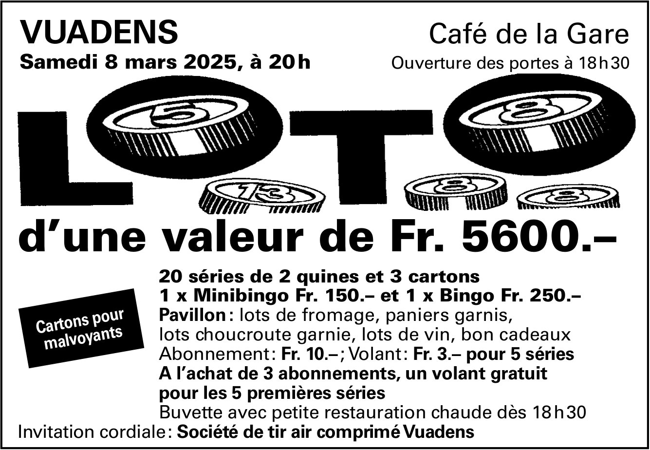 LOTO, 8 mars 20h, Café de la Gare, Vuadens