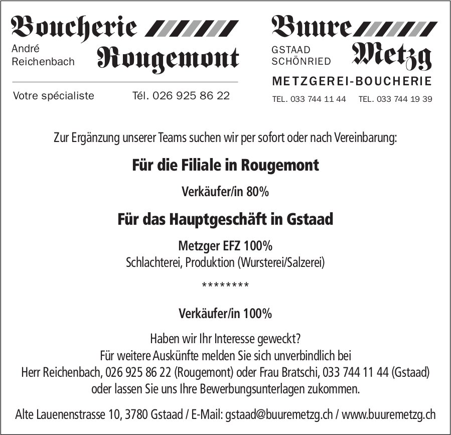 Verkäufer/in 80% & Metzger EFZ 100%, Buure Metzg, Gstaad & Rougemont, gesucht