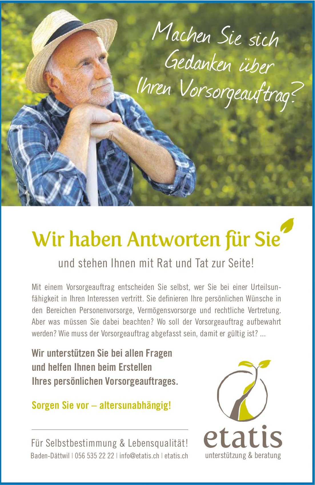 Etatis, Baden-Dättwil - Machen Sie sich Gedanken über Ihren Vorsorgeauftrag?