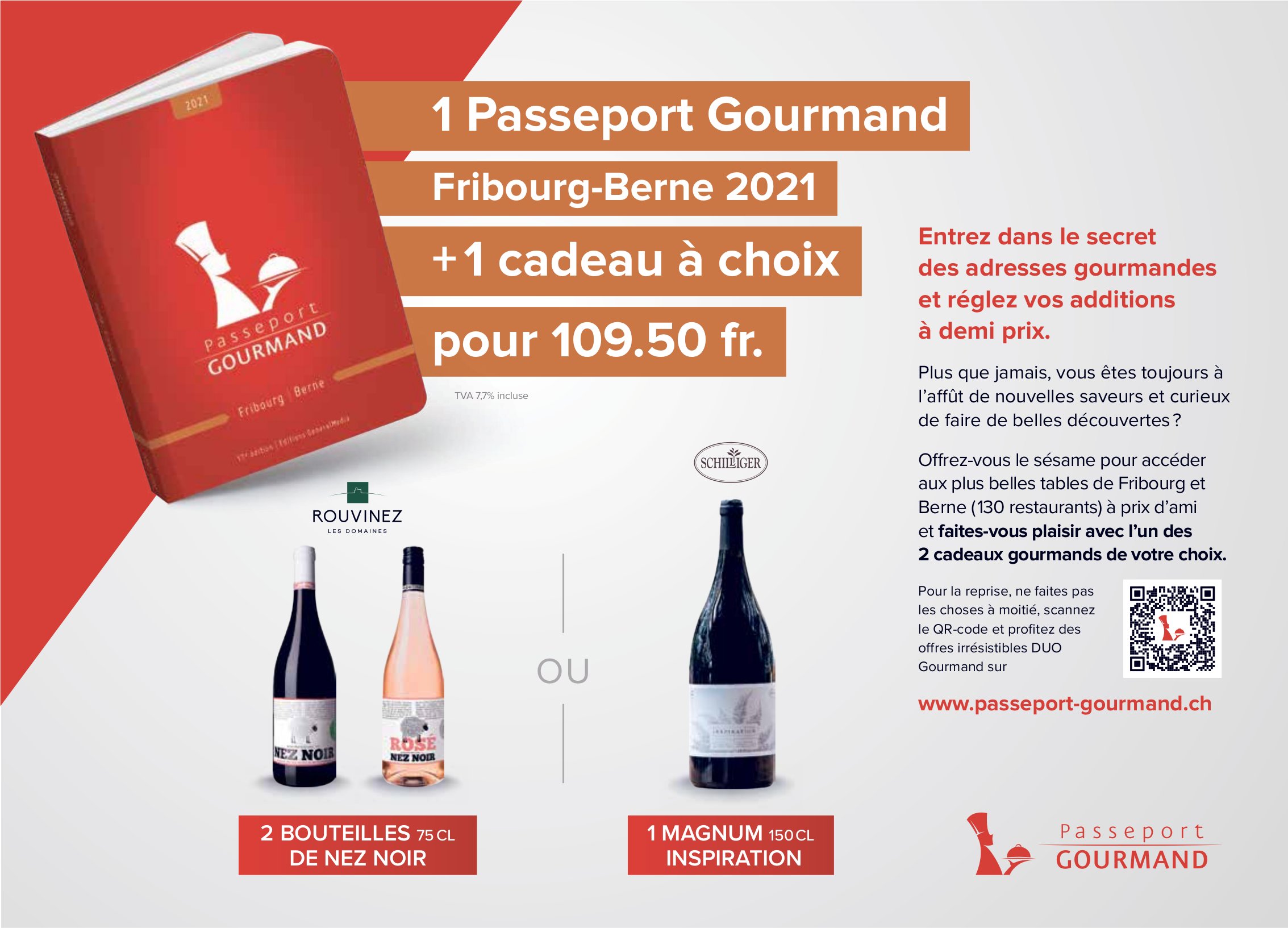Passeport Gourmand, Fribourg, 1 passeport gourmand + 1 cadeau à choix pour 109.50 Fr