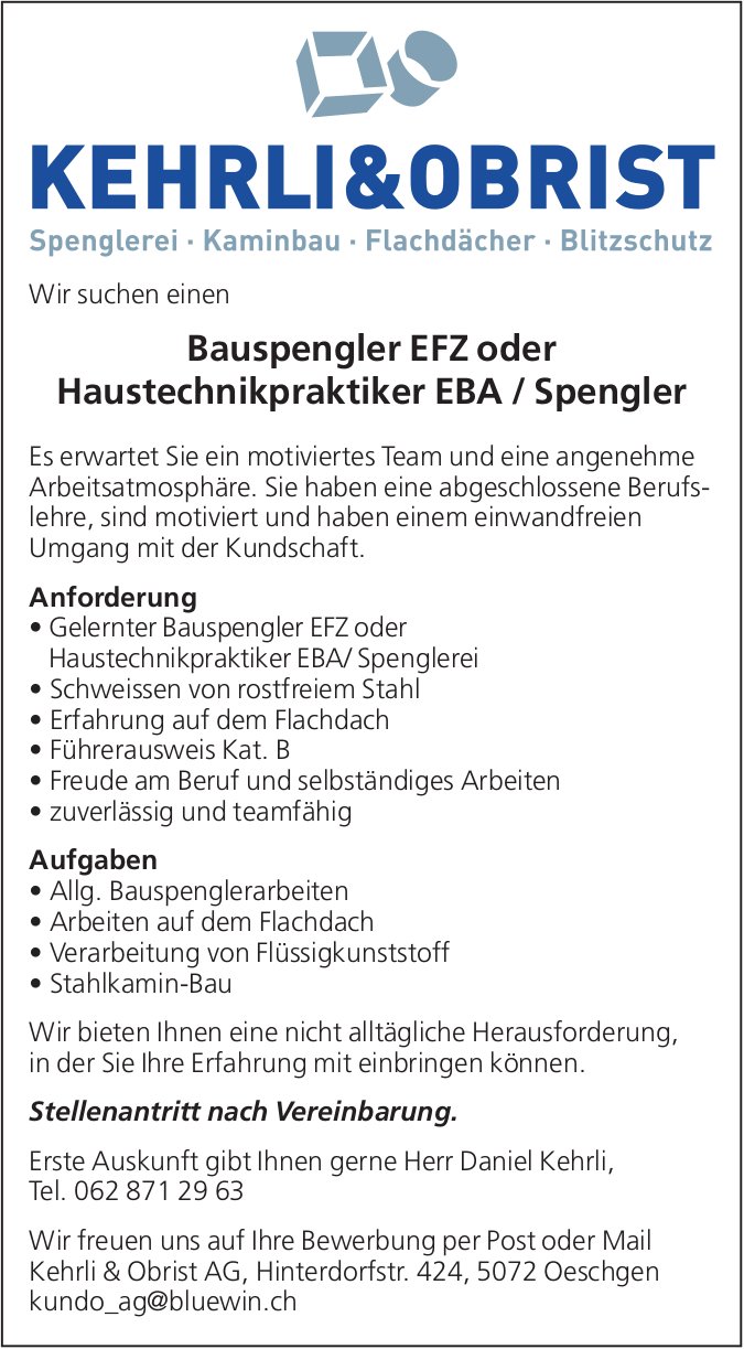 Bauspengler EFZ oder Haustechnikpraktiker EBA / Spengler, Kehrli & Obrist AG, Oeschgen, gesucht