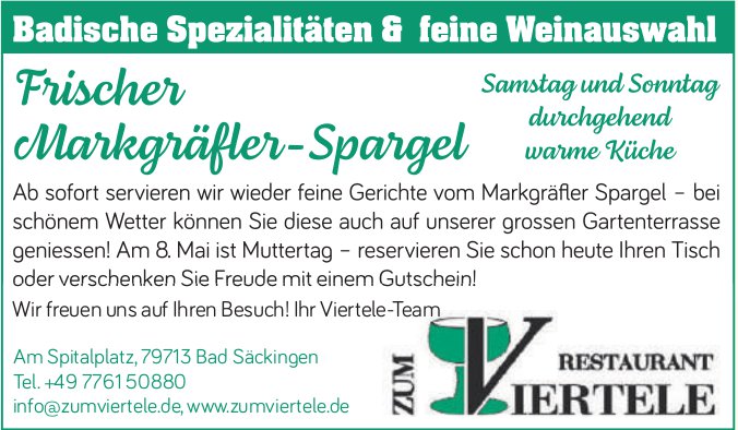 Restaurant zum Viertele, D-Bad Säckingen - Frischer Markgräfler-Spargel