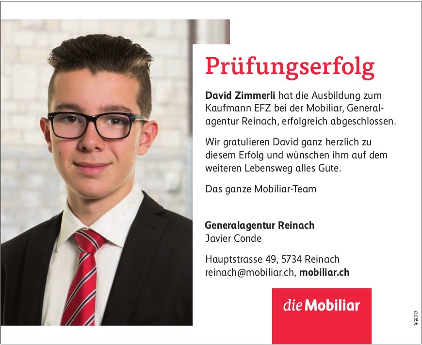Die Mobiliar, Reinach - Prüfungserfolg - David Zimmerli hat die Ausbildung erfolgreich abgeschlossen