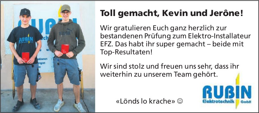 Rubin Elektrotechnik GmbH - Toll gemacht, Kevin und Jerône!
