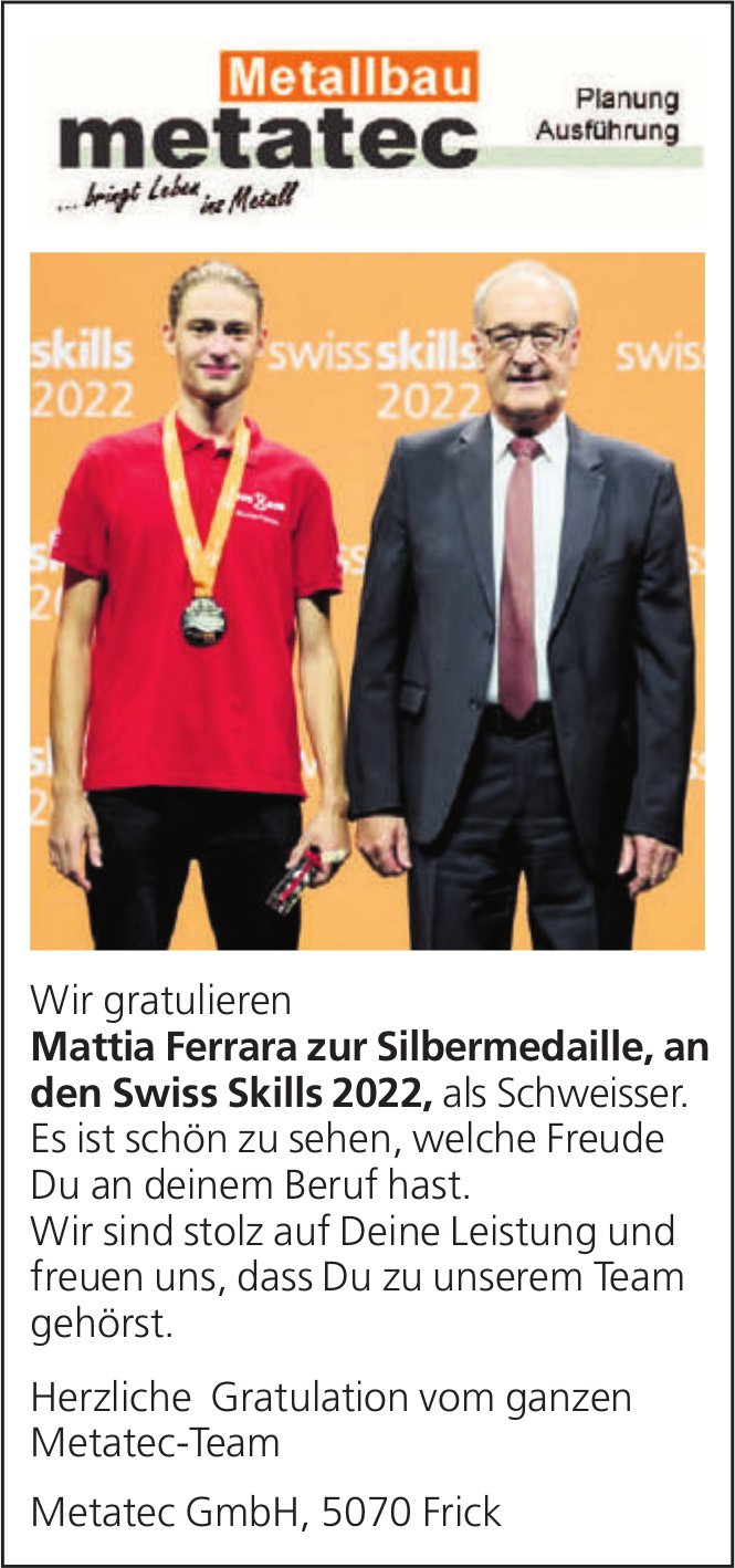 Metatec GmbH, Frick - Wir gratulieren Mattia Ferrara