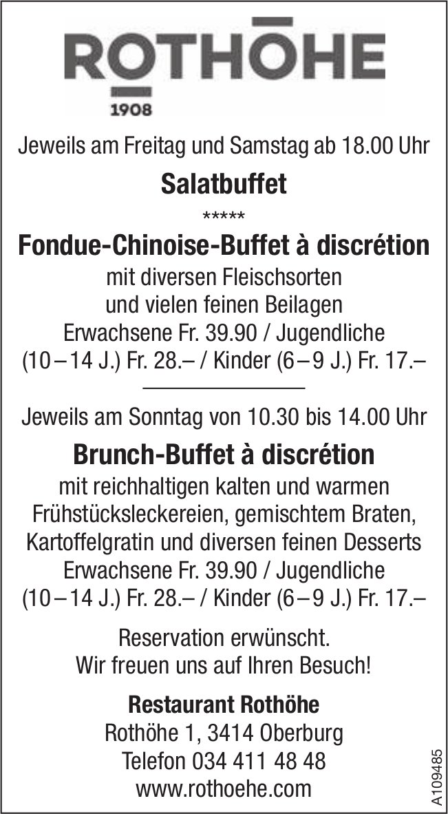 Restaurant Rothöhe, Oberburg - Freitags und samstags Fondue-Chinoise-Buffet à discrétion