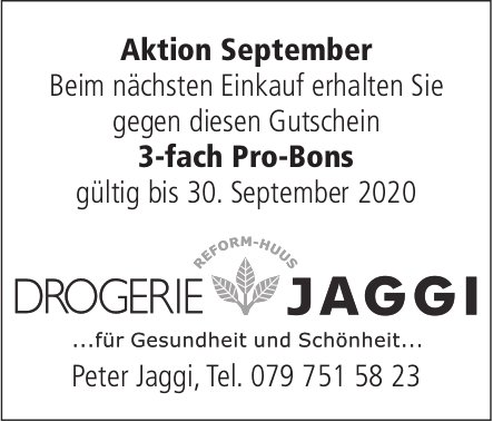 Drogerie Jaggi, Saanen - Aktion September, 3-fach Pro-Bons