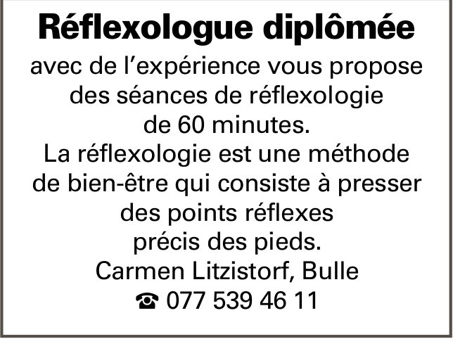 Bulle - des séances de réflexologie de 60 minutes.