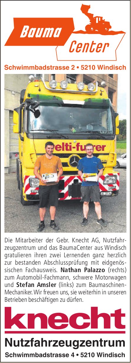 Bauma Center/ Knecht Nutzfahrzeugzentrum - Wir gratulieren Nathan Palazzo und Stefan Amsler